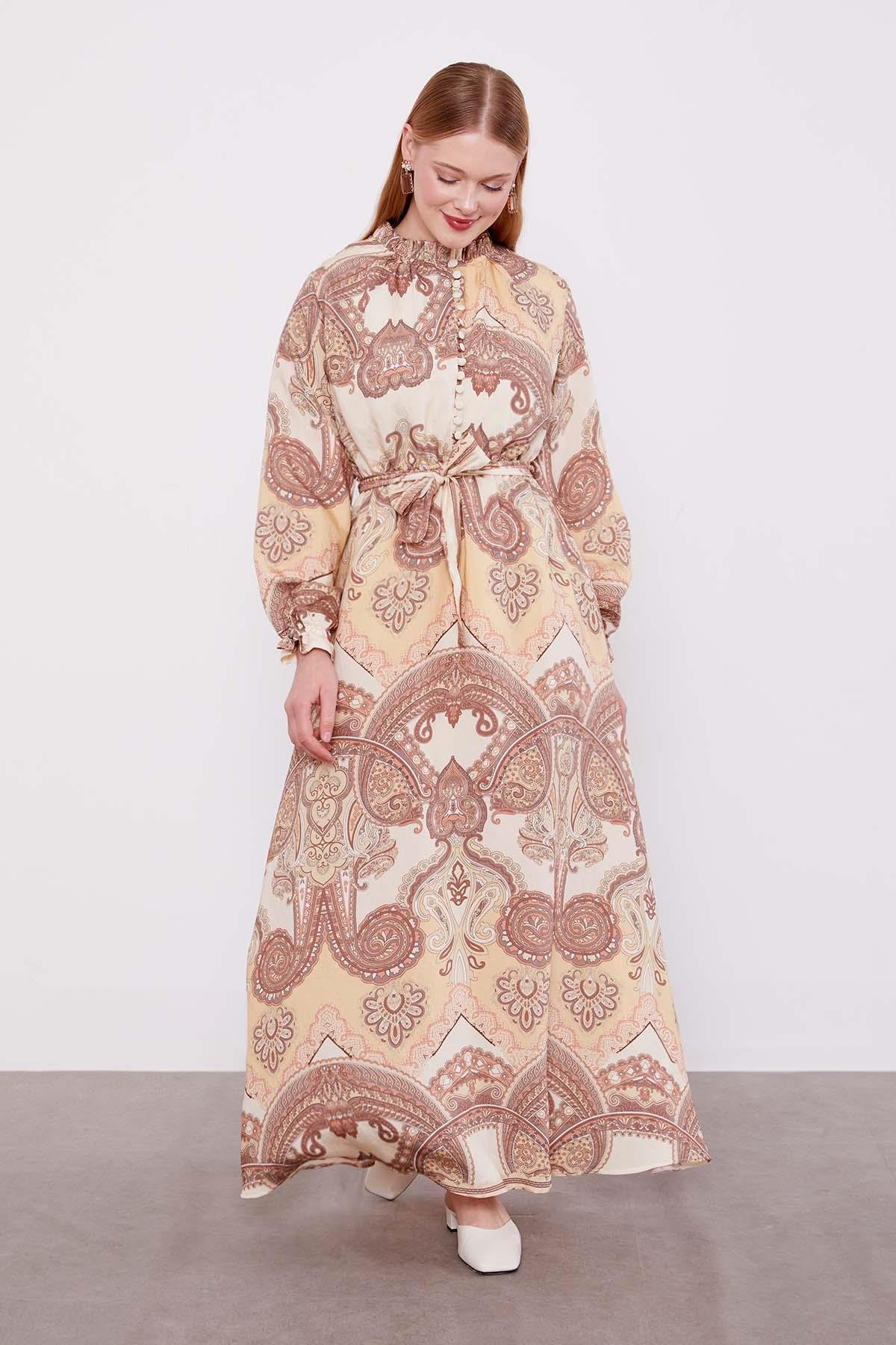 Vizon Etnik Desenli Elbise