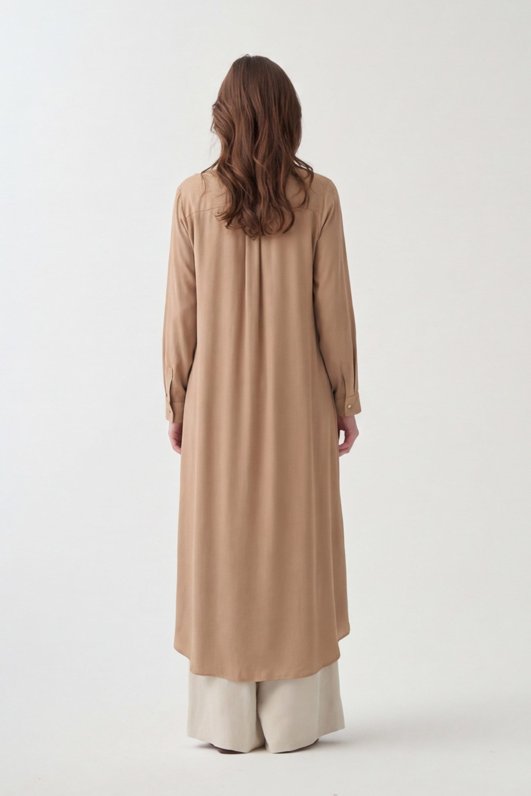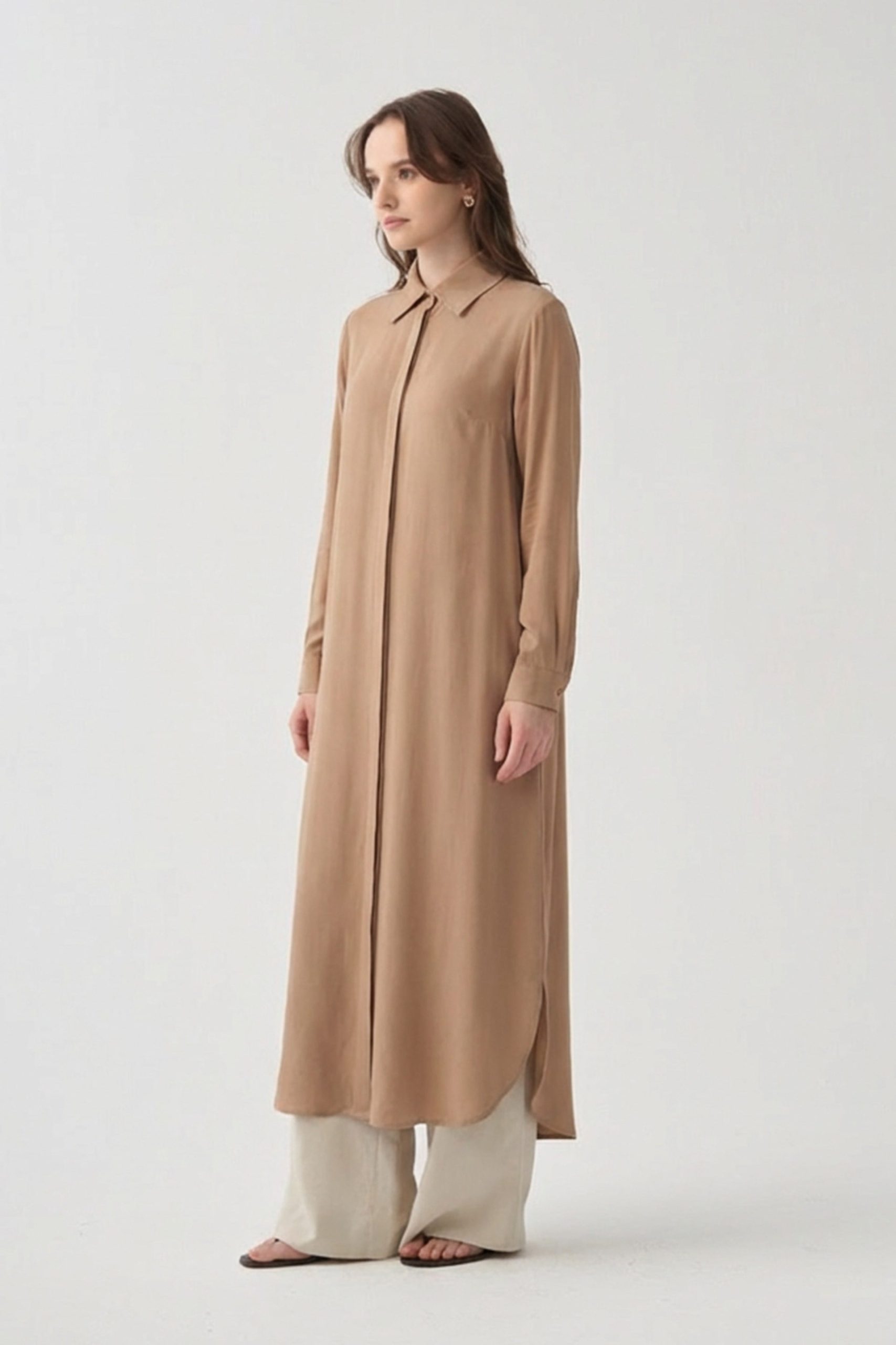 Şıklığı detaylarda arayanlara özel Vizon-Gizli Patlı Uzun Gömlek ile zarif bir görünüm yakalayın. Günlük ve özel kombinler için ideal tasarım ALLDAY’de!