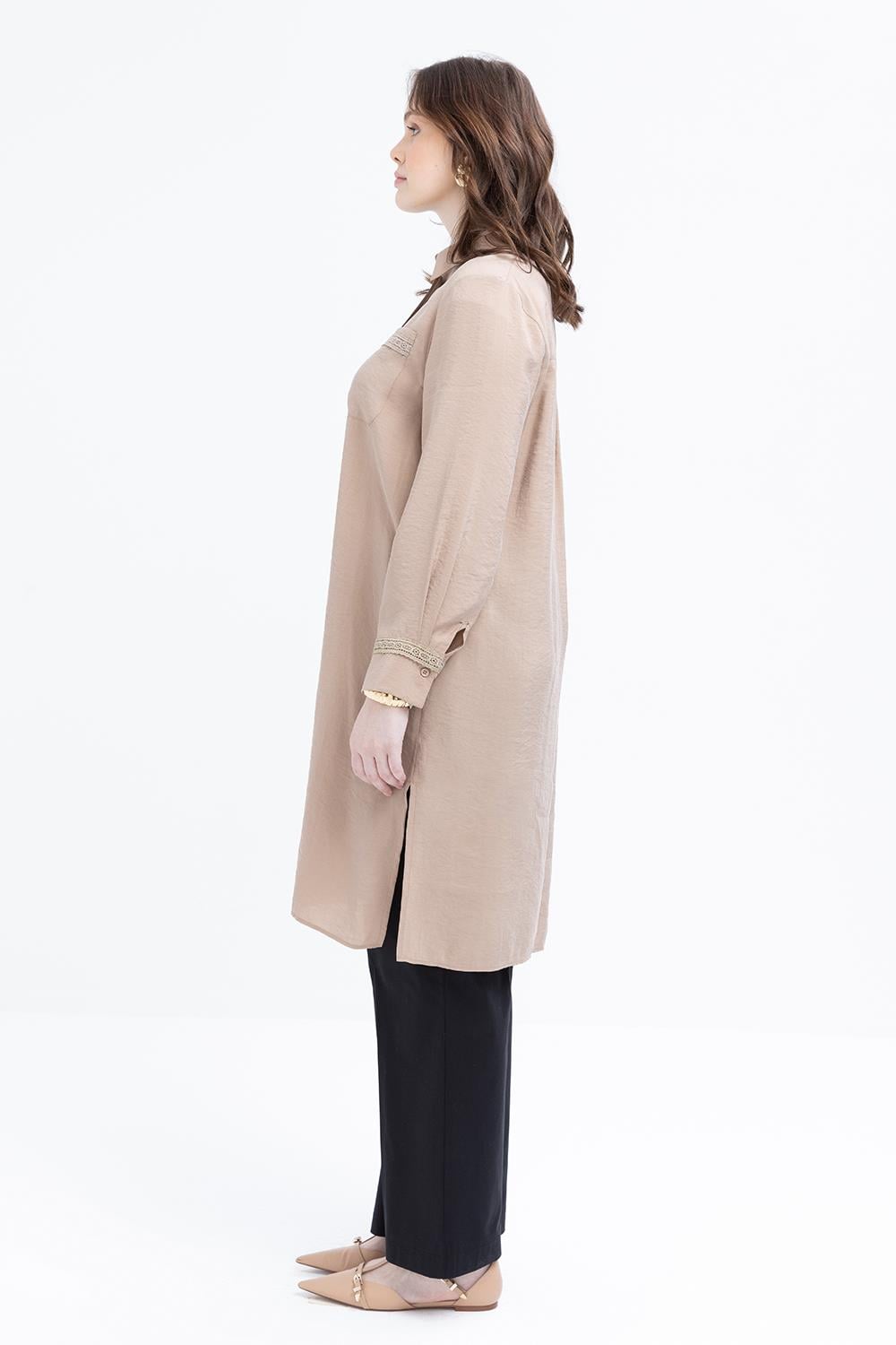 Vizon-Şerit Dantel Detaylı Modal Gömlek Tunik