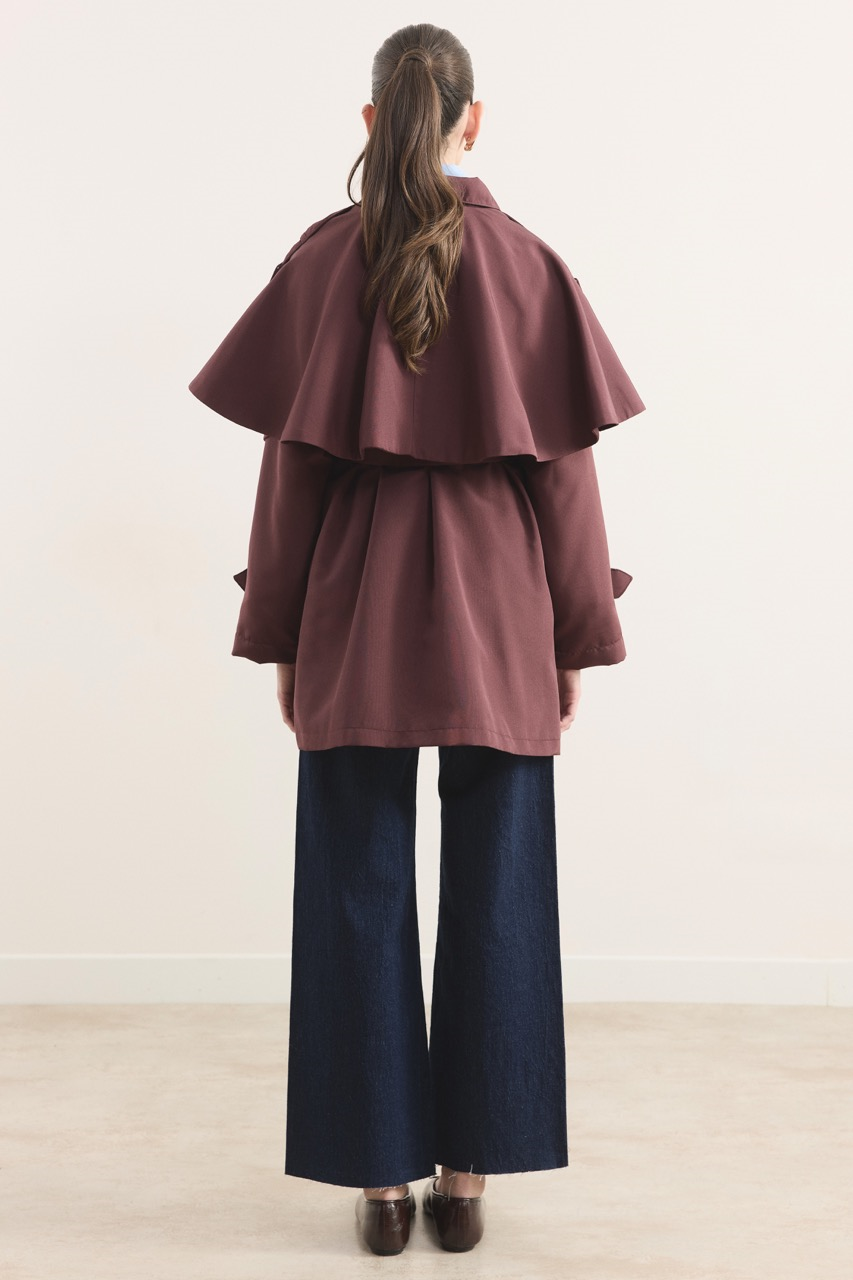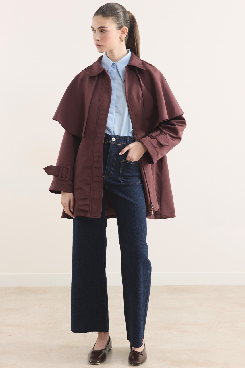 Yaka Detay Kol Kemerli Kısa Trençkot – Bordo
