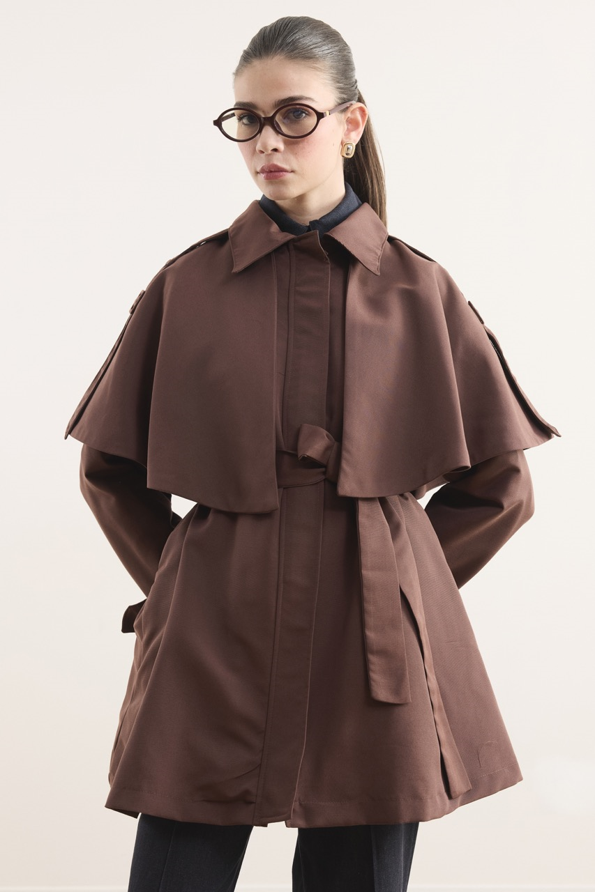 Yaka Detay Kol Kemerli Kısa Trençkot – Kahve