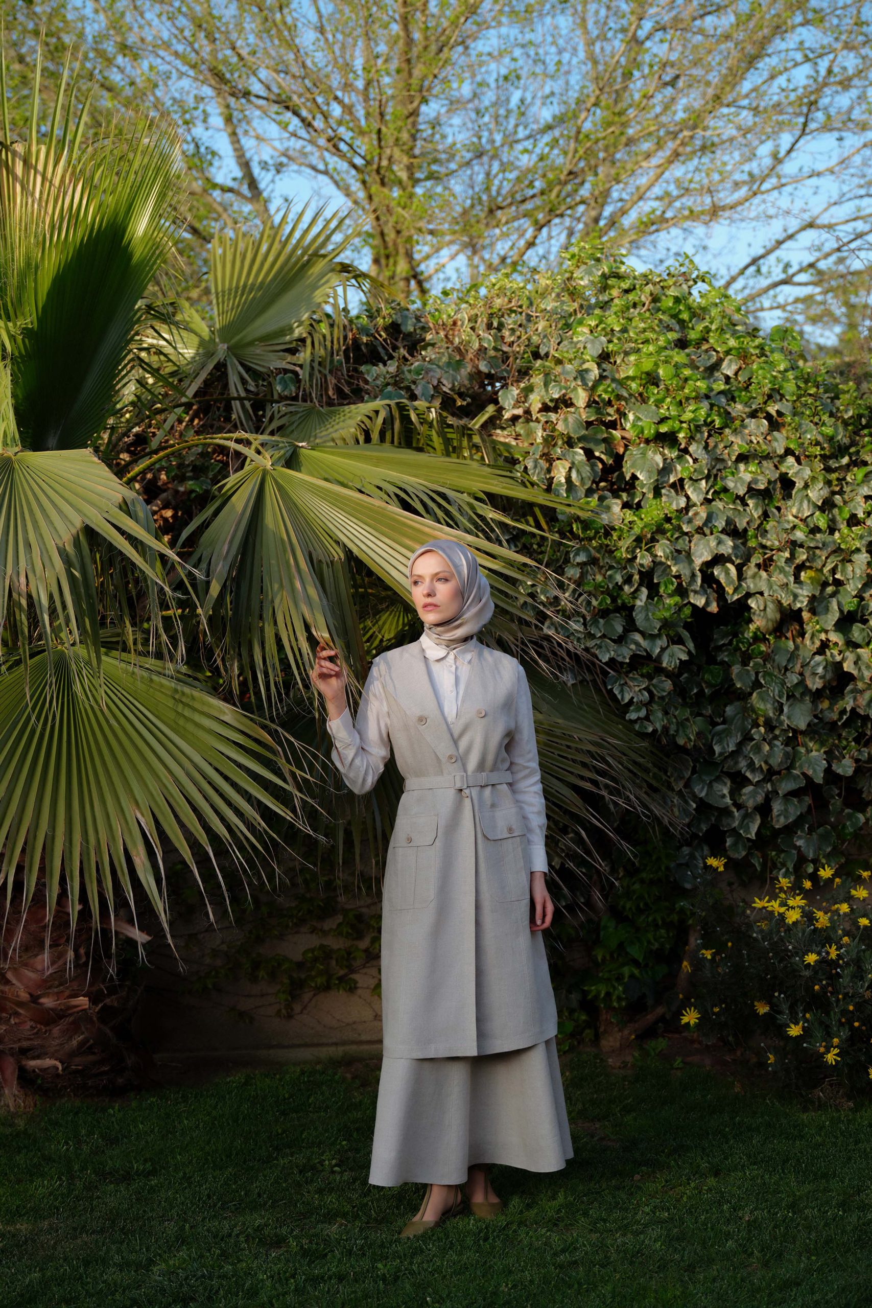 Doğal dokularla basit şıklık: Yaka Detaylı Keten Yelek. Yaz ayları için vazgeçilmez bir kumaş olan ketenin hafifliğini modern kesim ve şık yaka detayları ile birleştiren bu özel tasarım, minimal tarzı sevenler için ideal bir seçimdir.