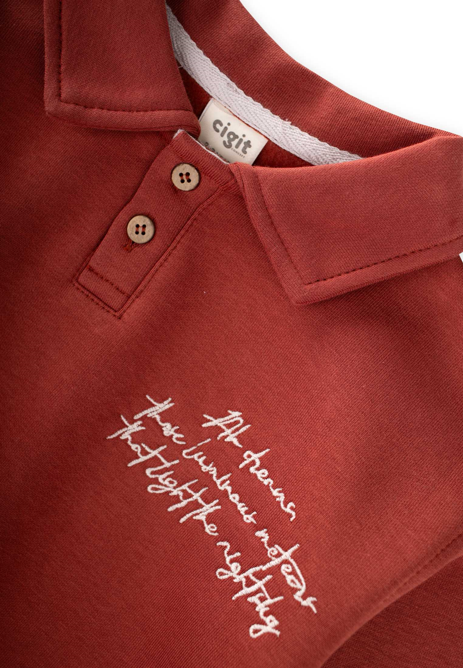 Yakalı Nakış İşlemeli Sweatshirt Takım 2-10 Yaş Kiremit