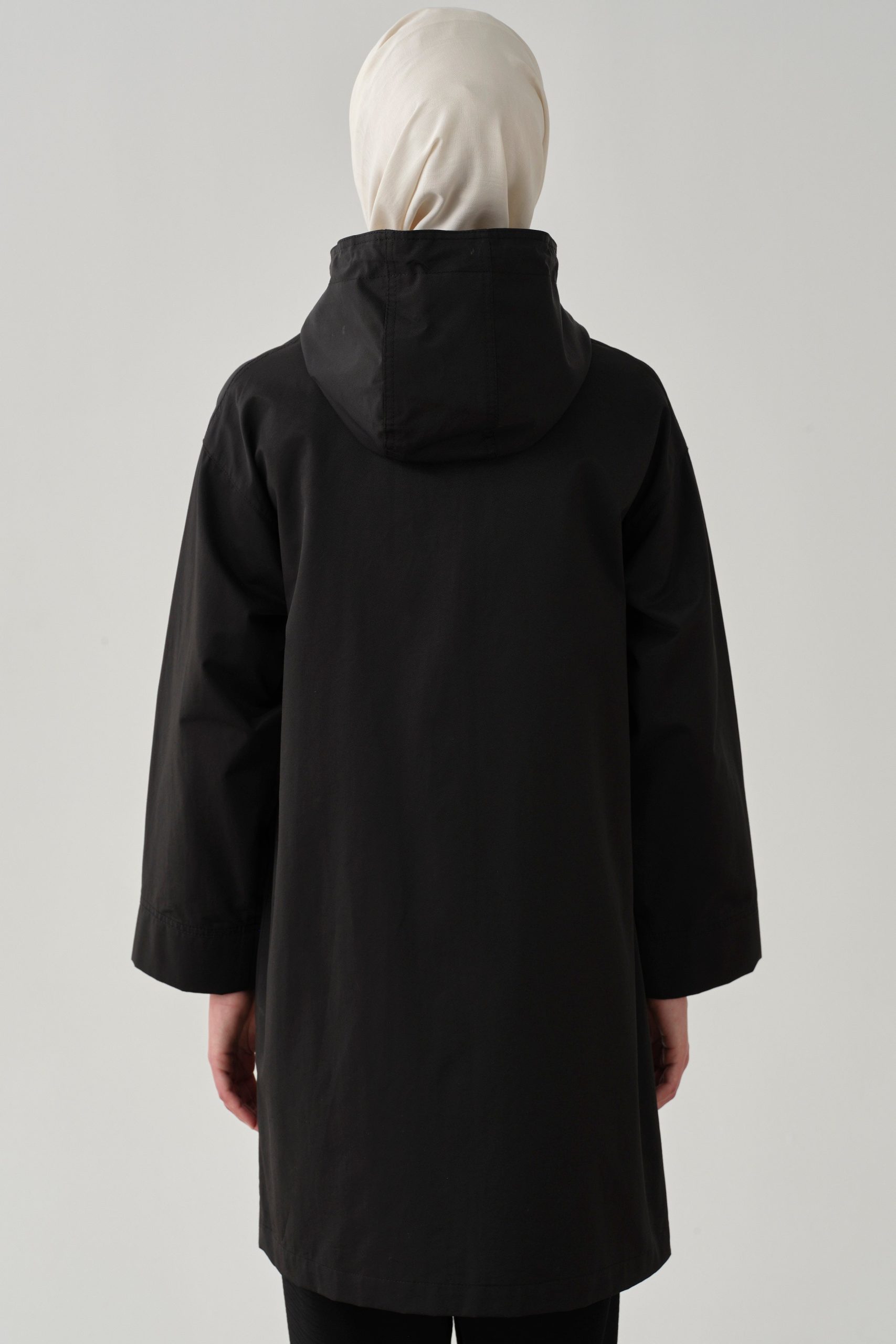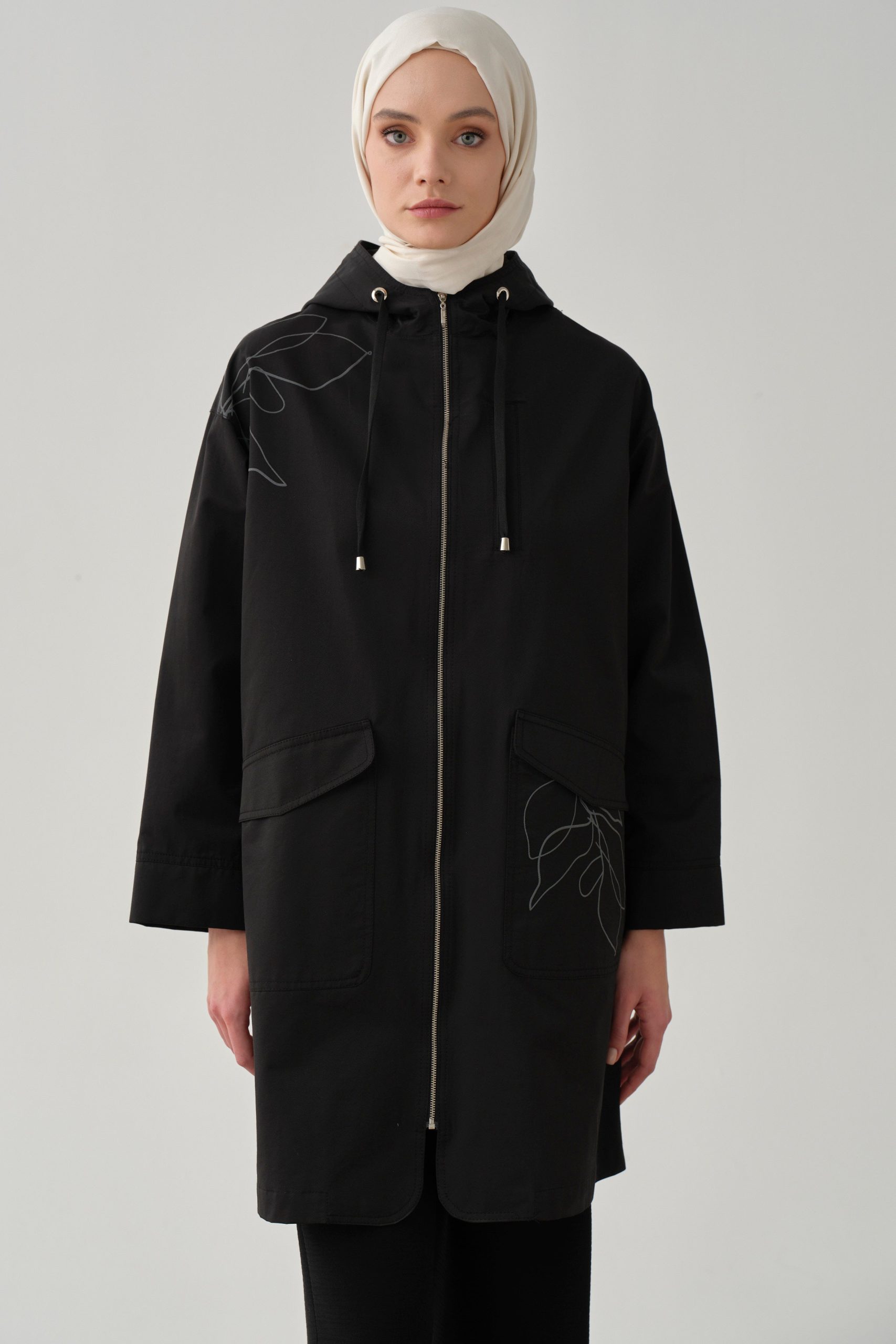 Yaprak Desenli Baskılı Yağmurluk – Siyah