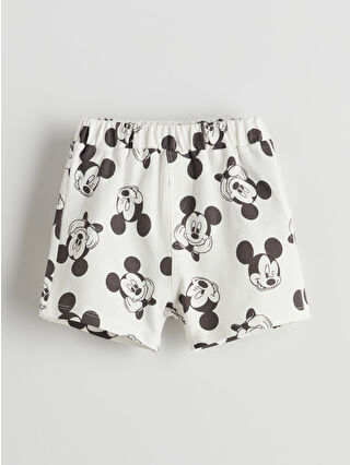 Bej Mickey Mouse Baskılı Erkek Bebek Tişört ve Şort 2’li