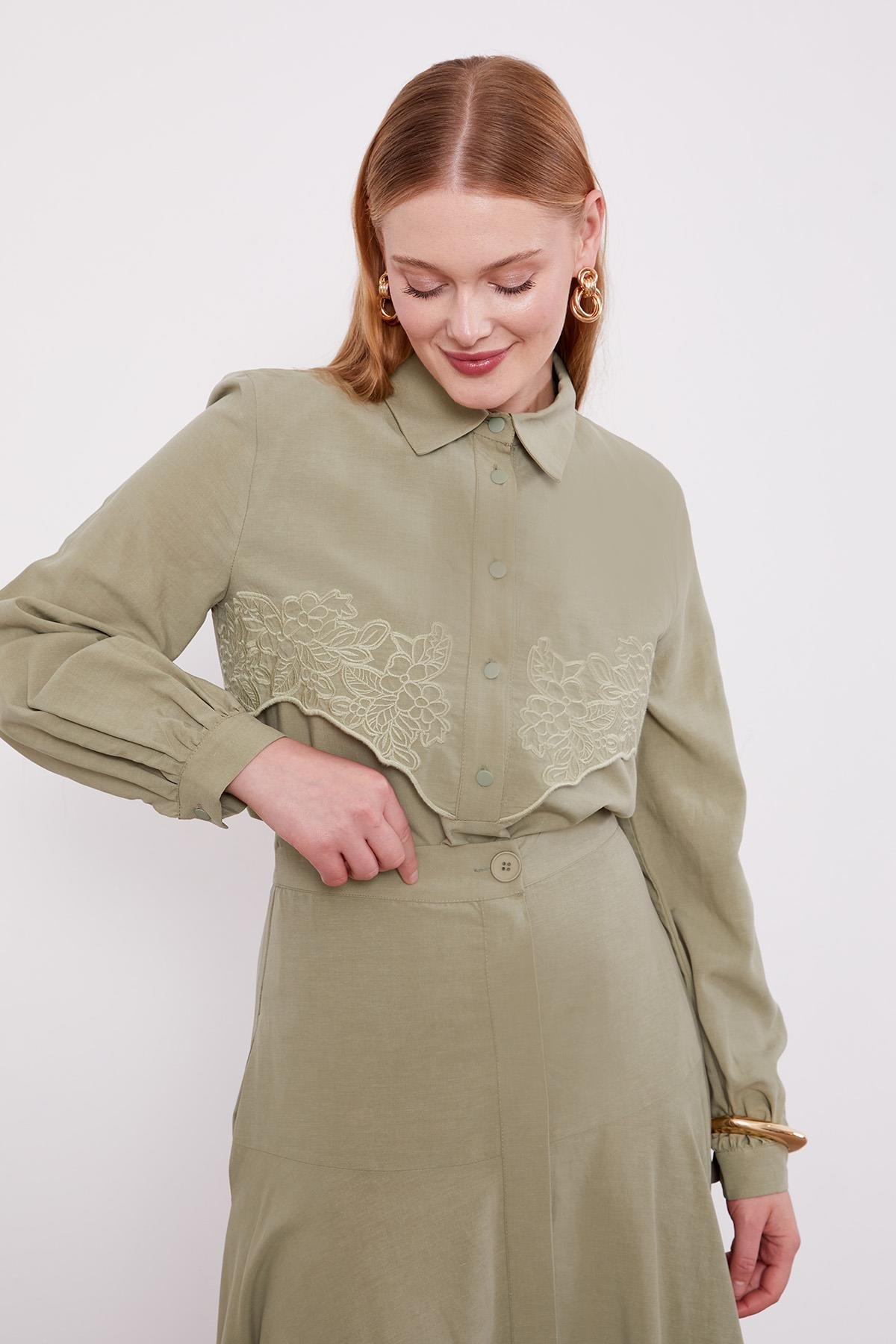 Yeşil Nakış Detaylı Cupra Etek Takım