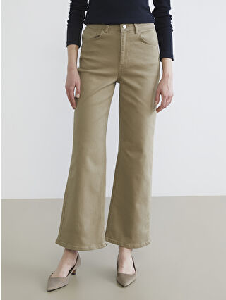 Yeşil Wideleg Kadın Jean Pantolon