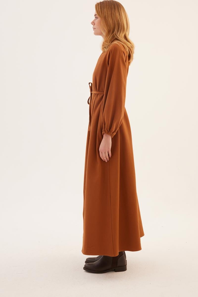 Kemerli ve ceplidir. Astarsızdır, iç göstermez. Renk: Kiremit Mevsim: Kışlık – Baharlık İçerik: %100 Pamuk Hafif bol kalıptır. Ceplidir. Kemerlidir. Boy: ortalama 135 cm Beden seçenekleri: S beden (34-36 uyumlu, göğüs: ortalama 112 cm) M beden (38-40 uyumlu) L beden (42-44 uyumlu) Not: Verilen ölçüler en küçük bedene aittir, bedenler arasında ortalama 4 cm fark bulunmaktadır. Manken boyu: 1.75 m Mankenin üzerindeki beden S bedendir. Hassas yıkama programında en fazla 30 derecede yıkanması gerekmektedir.
