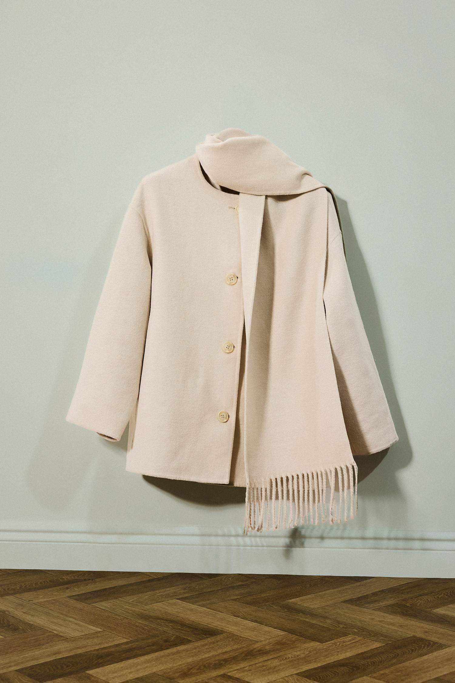 Yün Karışımlı Çıkarılabilir Atkılı Relax Fit Düğmeli Kaşe Kaban