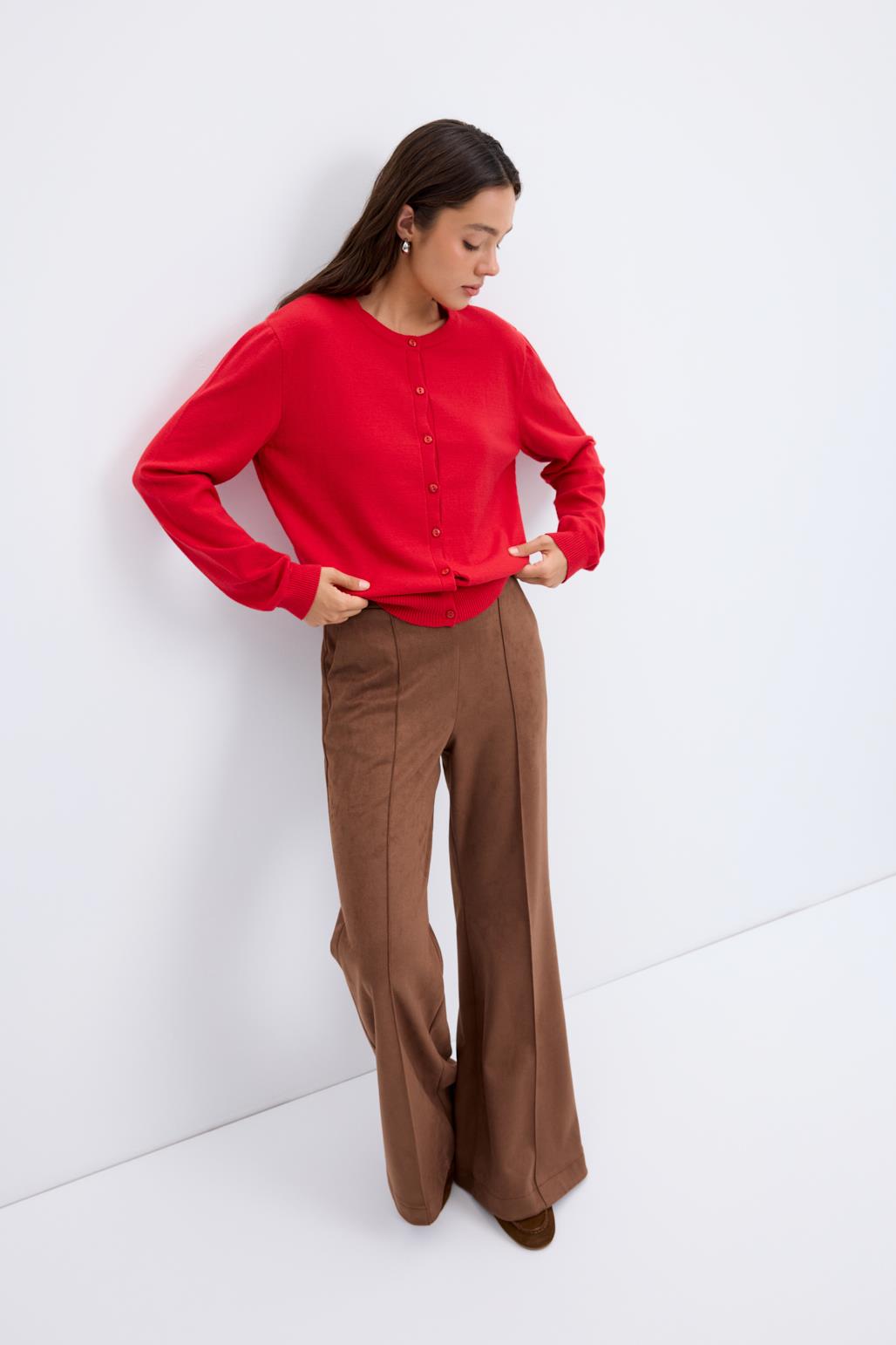 Yuvarlak Yaka Düğmeli Örgü Kardigan Kırmızı