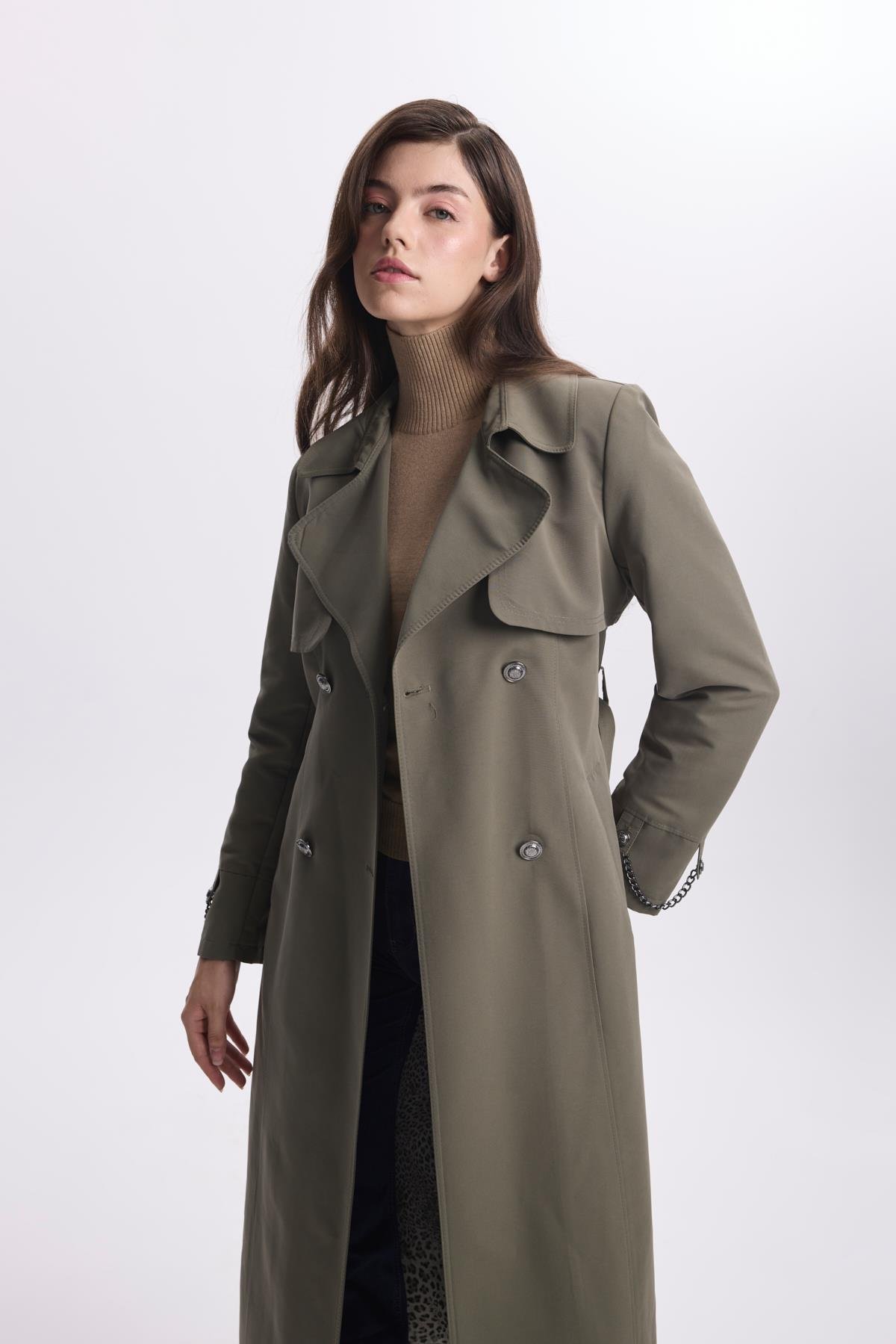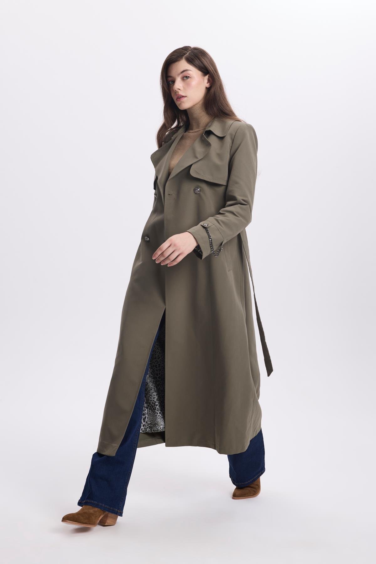Zincir Detaylı Haki Trençkot 13560